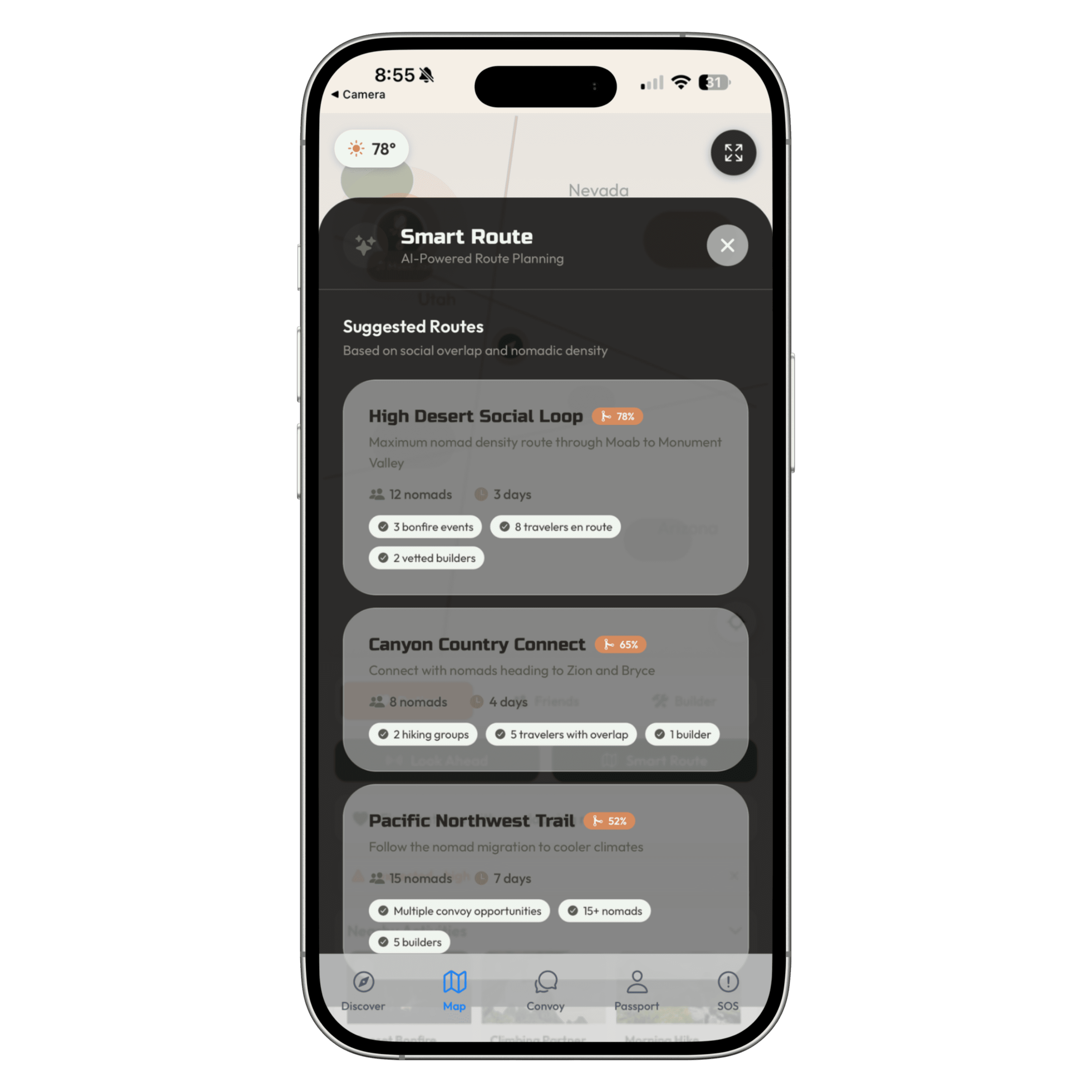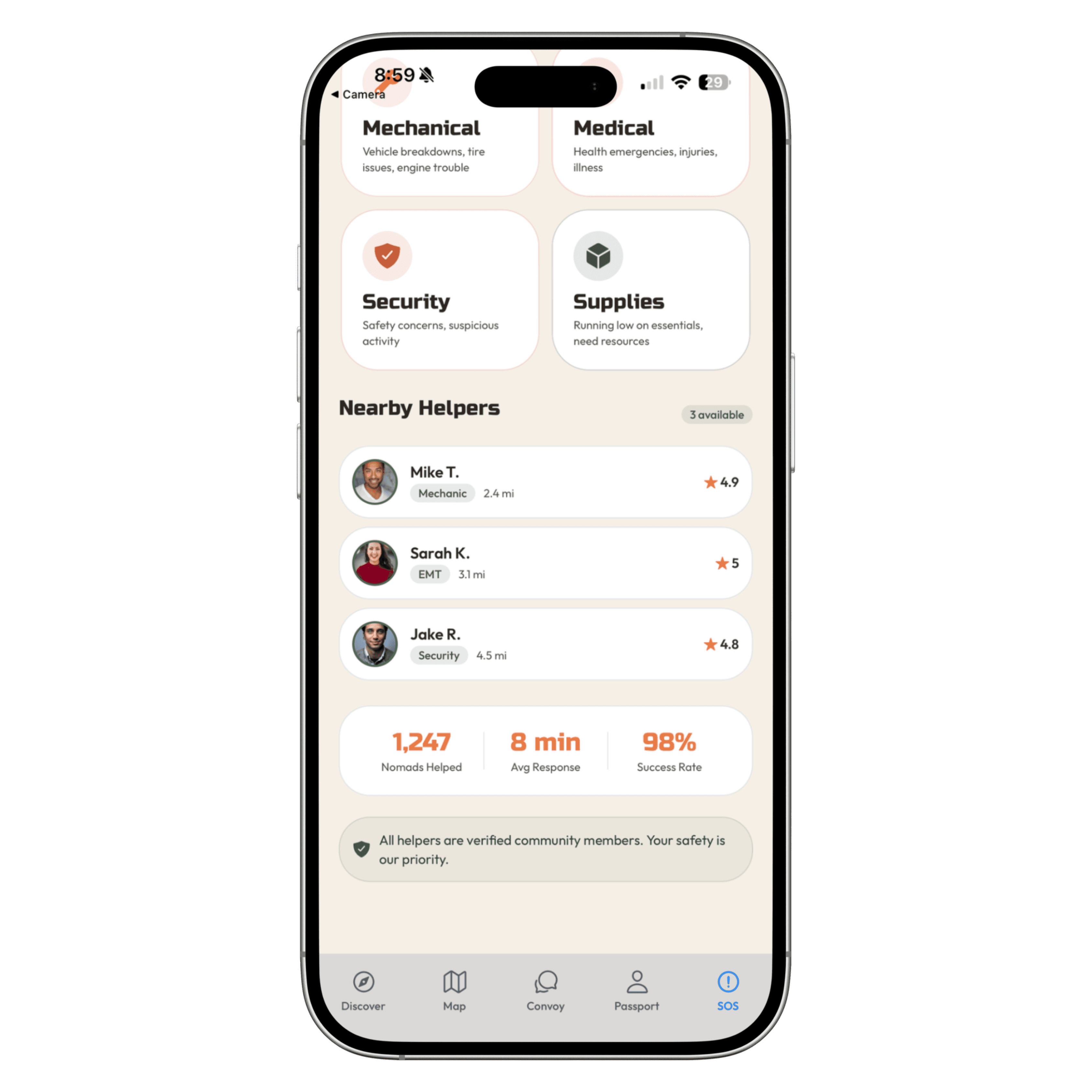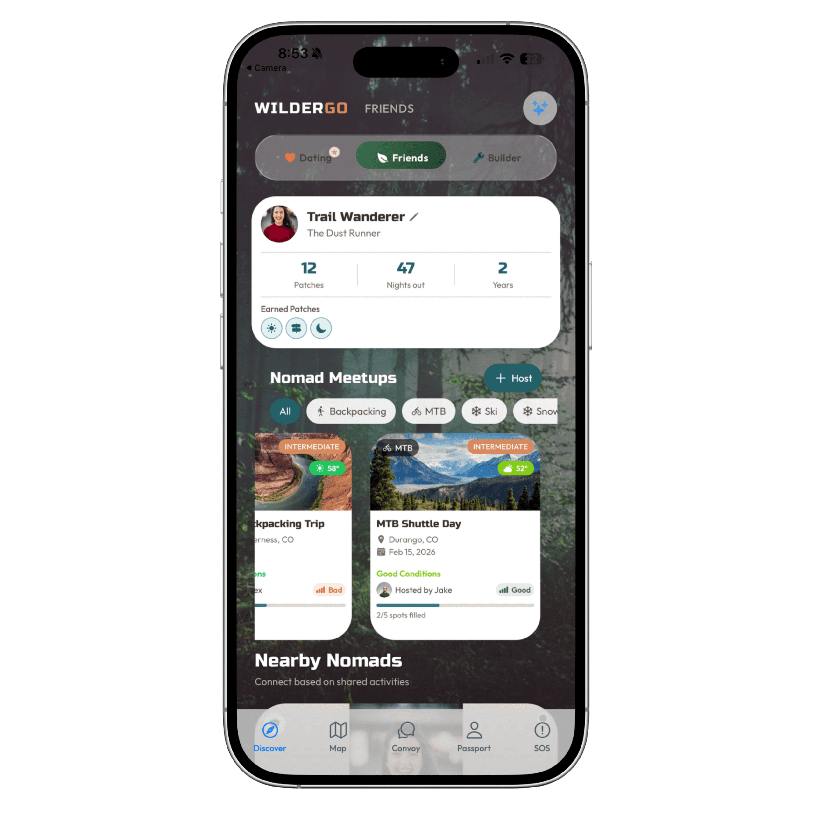 Dating. Friends. Builders. Emergency Help. Everything nomadic life needs, in one app.